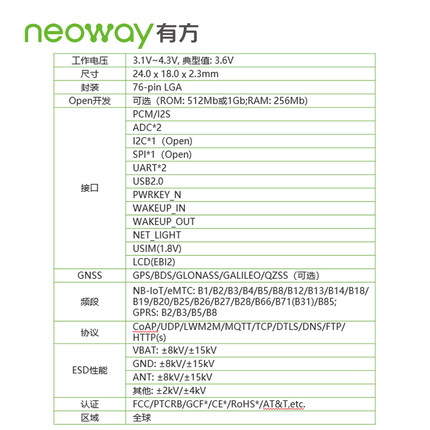 模塊Neoway 有方科技N27 NB-IoT/GPRS 模塊/全球無線通信模塊